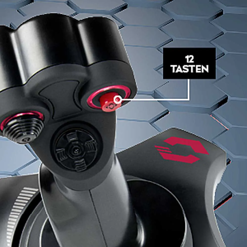Verwandeln Sie Ihren Schreibtisch in ein Cockpit, der PHANTOM HAWK Flightstick macht die Flugsimulation zu einem wahren Erlebnis und verleiht herausfordernden Missionen Authentizität. Mit Gasregler, drei Steuerdimensionen und Acht-Wege-Coolie-Hat sind Sie bereit für Rennen, spektakuläre Luftkämpfe und präzise Rettungsflüge.