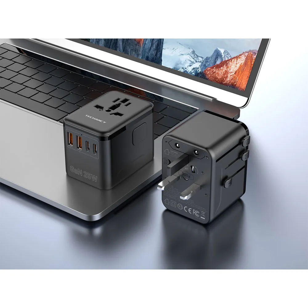Techancy ist ein tragbarer Steckeradapter, der für grenzüberschreitendes Reisen entwickelt wurde. Ausgestattet mit GaN 25W Schnellladetechnologie und mehreren USB-Anschlüssen ermöglicht er das schnelle, gleichzeitige Aufladen mehrerer Geräte. Kompatibel mit Spannungen von 100V bis 250V, unterstützt er verschiedene globale Steckerstandards, um die elektrischen Anforderungen in verschiedenen Ländern zu erfüllen, was ihn zu einem unverzichtbaren Begleiter für Reisen und Geschäftsreisen macht.