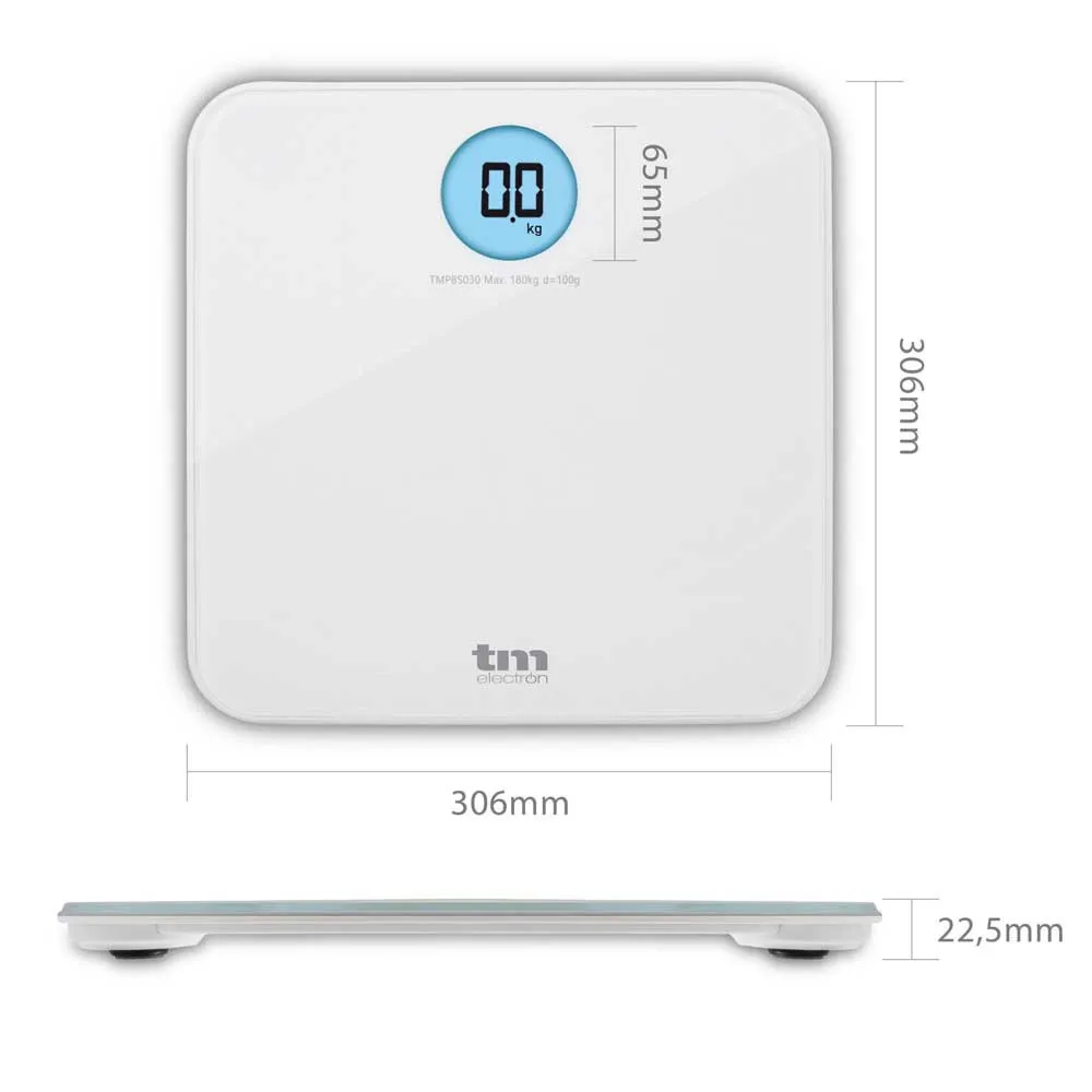 Kontrollieren Sie Ihr Gewicht mit der TM Electron Waage aus gehärtetem Glas. Ultradünn, hochpräzise und mit einem modernen und attraktiven Design für Ihr Badezimmer. Dank des großen LCD-Displays haben Sie Ihr Gewicht immer gut im Blick.