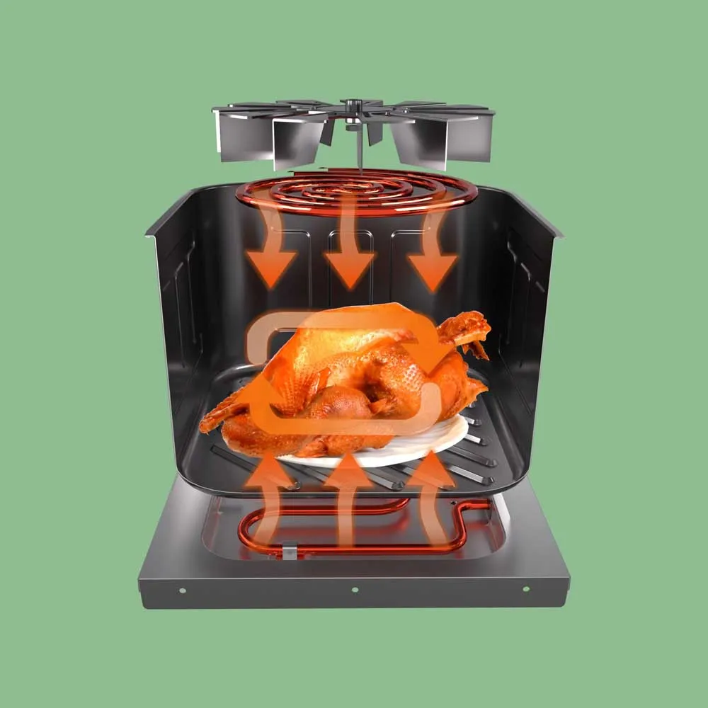 Die wahre Magie liegt in ihrer fortschrittlichen Heißluftzirkulationstechnologie, die Ihre Speisen mit überhitzter Luft umhüllt, um sie gleichmäßig zu garen und diesen unwiderstehlichen Knusper ohne tiefes Frittieren zu erzeugen.