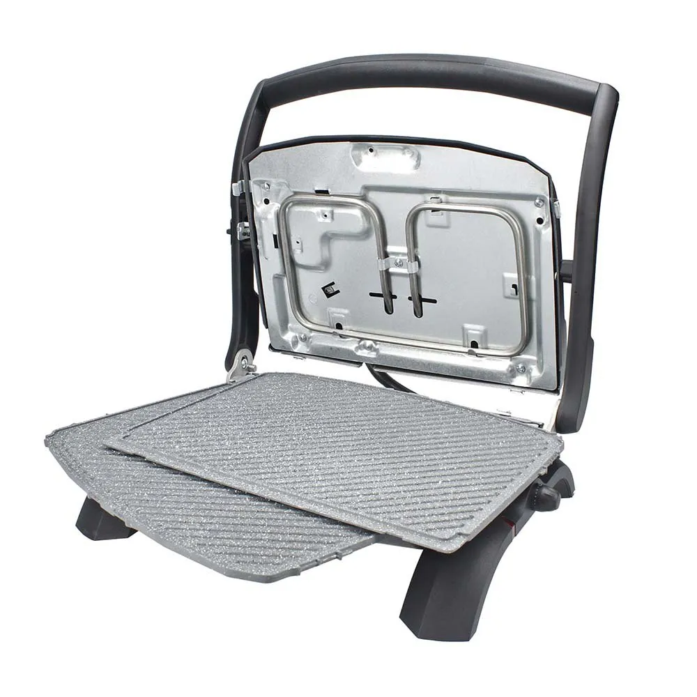 - Elektrogrill mit großen abnehmbaren Platten und 1800 W Leistung.