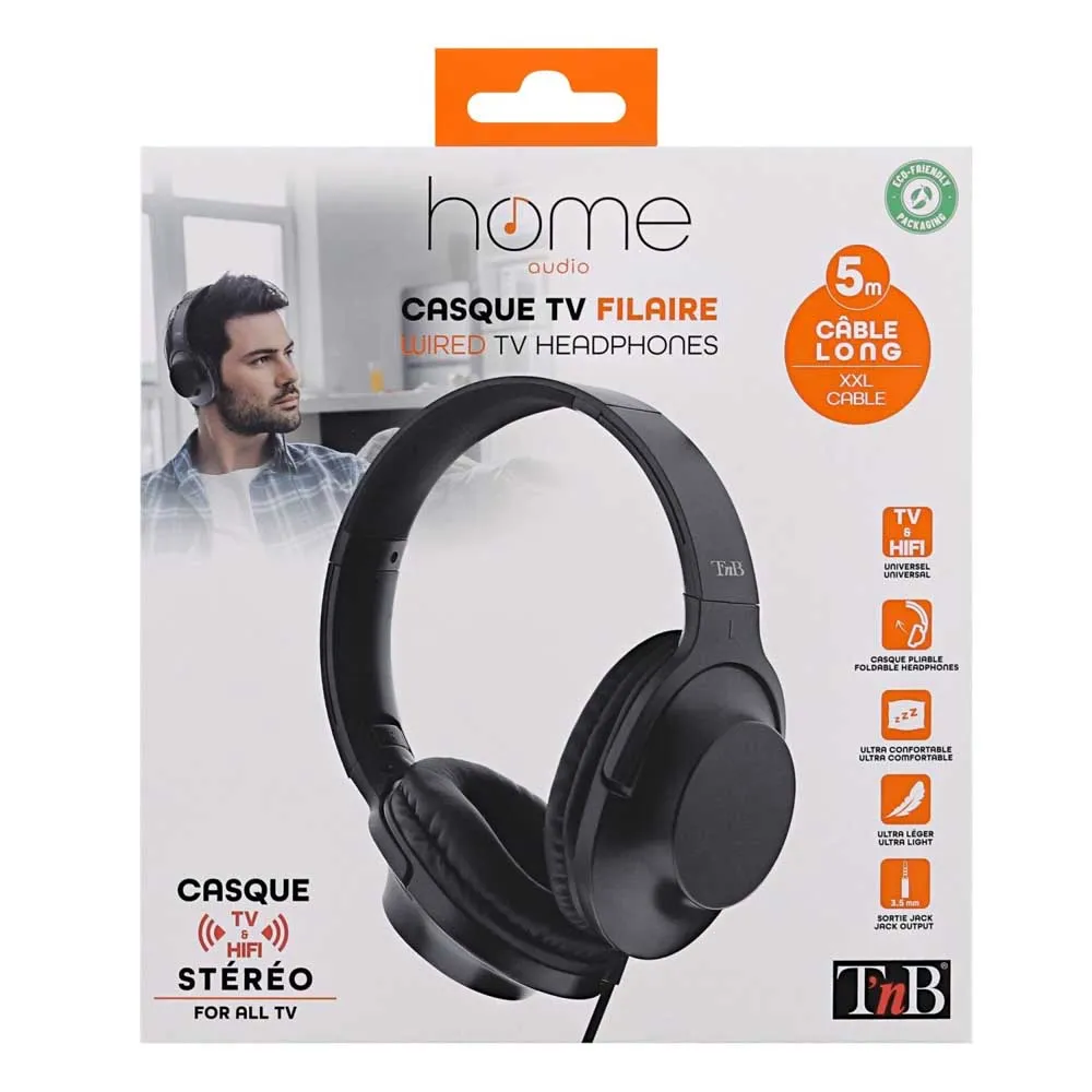 Dieses neue 2 Meter lange kabelgebundene Headset, ultra bequem, verfügt über eine 3 Meter lange Audioverlängerung, ideal, um sich im Raum zu bewegen. Ausgestattet mit einem verstellbaren Kopfbügel können Sie das Headset nach Belieben für optimalen Komfort anpassen. Die gut umschließenden und ultraweichen Ohrpolster ermöglichen es Ihnen, Ihren Film oder Ihre Musik in vollen Zügen zu genießen. Praktischerweise ist das Headset auch faltbar, Sie können es in Ihrem TV-Schrank verstauen. Das CSHOME3 TV-Headset: Ihr neuer unverzichtbarer Begleiter, um in Ihre besten Filme und Serien einzutauchen.