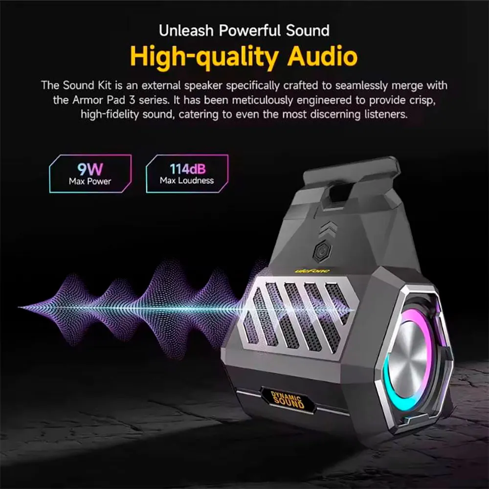 Dieses Sound Kit für das Ulefone Armor Pad 3 Pro Tablet bietet eine Klangleistung von 9 W und ein RGB-LED-Beleuchtungssystem mit 5 Modi.