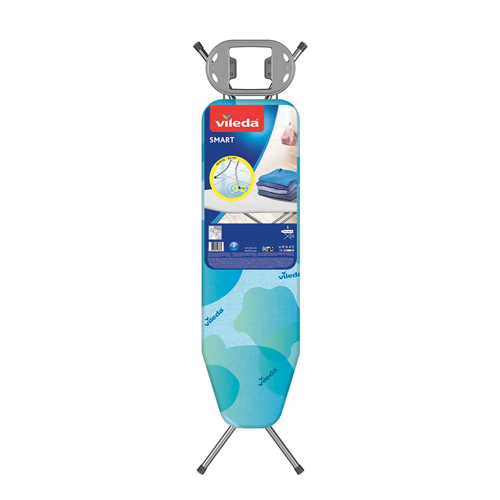 Für zusätzlichen Komfort ist der VILEDA 161244 für eine einfache Aufbewahrung konzipiert. Sein faltbares Design ermöglicht eine kompakte Aufbewahrung, wenn er nicht benutzt wird, wodurch wertvoller Platz in Ihrer Waschküche oder Ihrem Kleiderschrank gespart wird. Die Beine sind mit rutschfesten Kappen ausgestattet, die für zusätzliche Stabilität sorgen und verhindern, dass das Brett während des Gebrauchs verrutscht. Diese Funktion erhöht die Sicherheit und sorgt für ein sicheres Bügelgefühl.