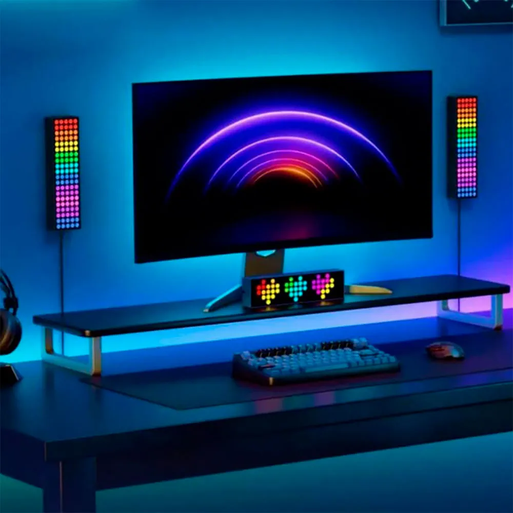 Erschaffe eine unglaubliche Atmosphäre in deinem Gaming-Zimmer mit mehreren RGB-Farben und Lichteffekten, die die Uhrzeit, Emojis, Buchstaben und andere Muster anzeigen.