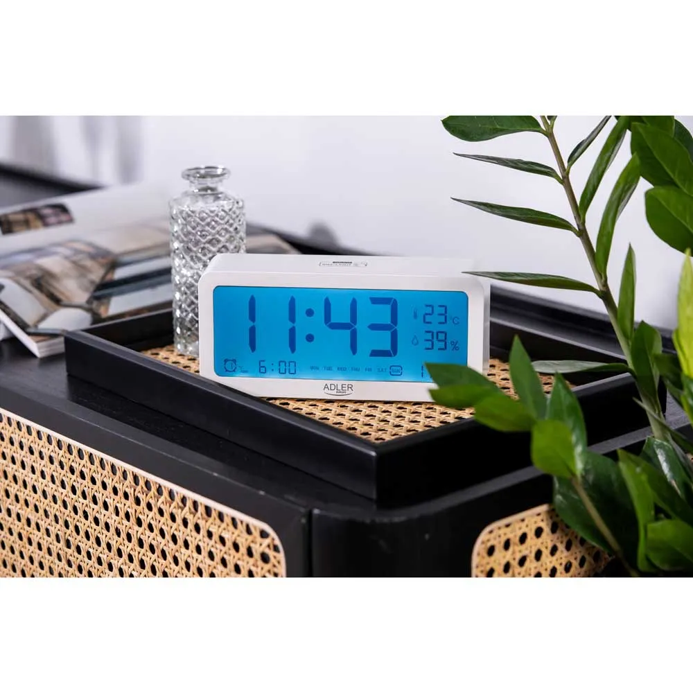 The AD 1195 alarm clock is a device with many useful functions that you can choose depending on your needs. First of all, it has 3 separate alarm time settings and displays: time, date, temperature, humidity. A big advantage is the legible backlit display, from which you can easily read the time and temperature. The alarm clock is powered by 2 AA batteries. Displays: time, date, temperature, humidity.