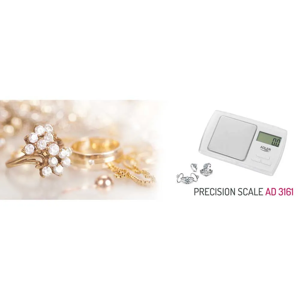 - The scale at home is an essential device. Today we present precision scale. If you run an enterprise in your home that requires you to weigh items such as jewellery pieces, we have the perfect solution for you! The jewellery scale ADLER AD 3161 is an affordable, functional and very practical device that will make your work go by faster and much more accurately.