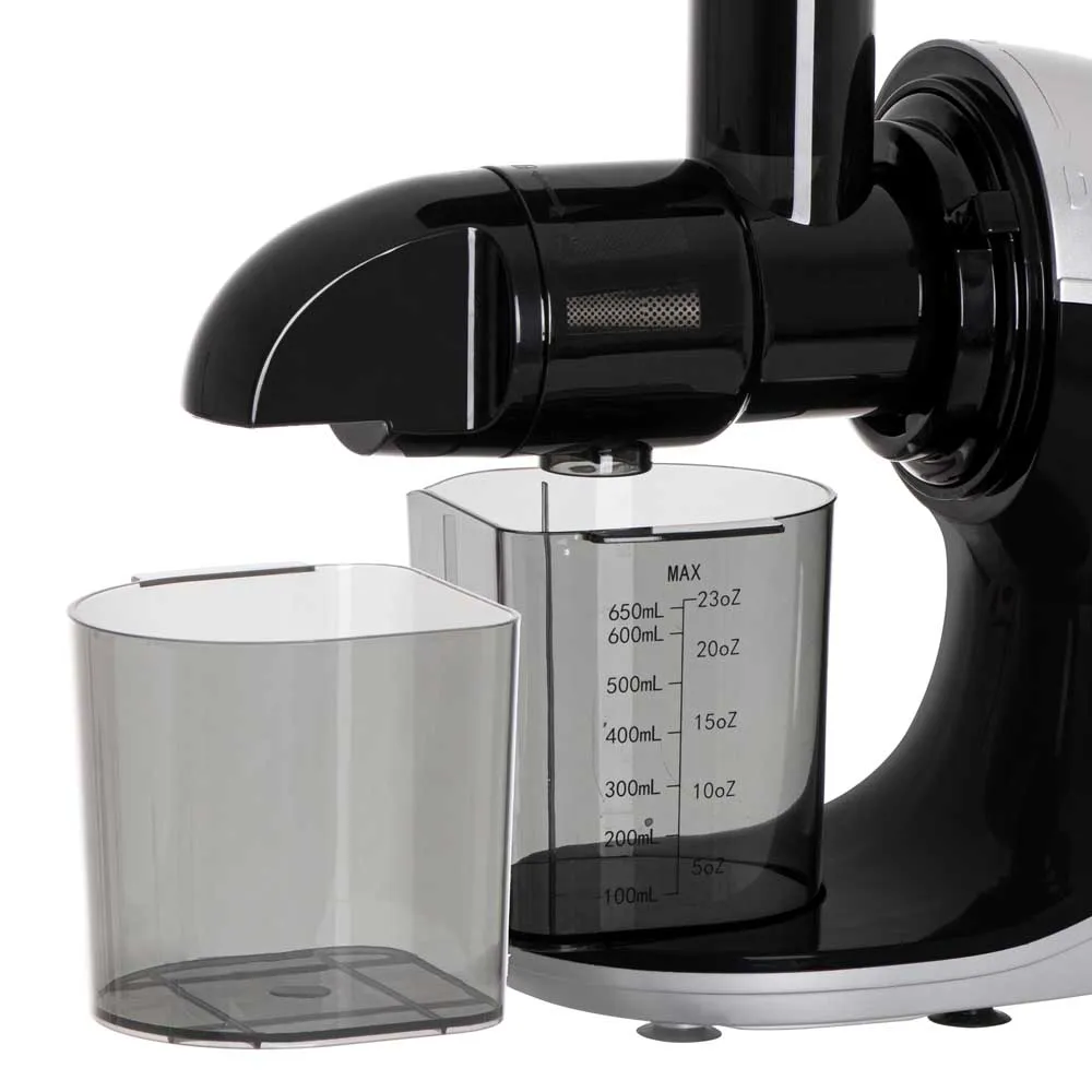 - Slow juicer with high juice yield (up to 75% extraction by weight) for more complete nutrition.