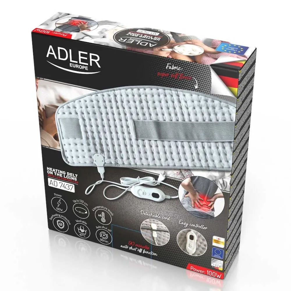 Soothe aches and find ultimate comfort with the ADLER AD 7437 lumbar heating belt. Wrapped in luxuriously soft fleece, this belt delivers targeted warmth exactly where you need it. The intuitive LCD remote lets you effortlessly select from 4 heat settings (40-75°C) for personalized relief. An elastic band and strong Velcro ensure a snug, secure fit for torsos up to 130cm. For your peace of mind, it features a 90-minute auto shut-off and overheat protection. The fabric is also hand washable for easy care