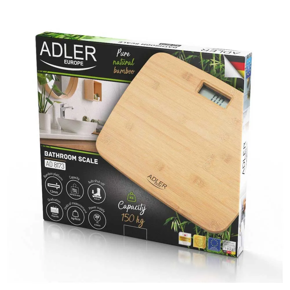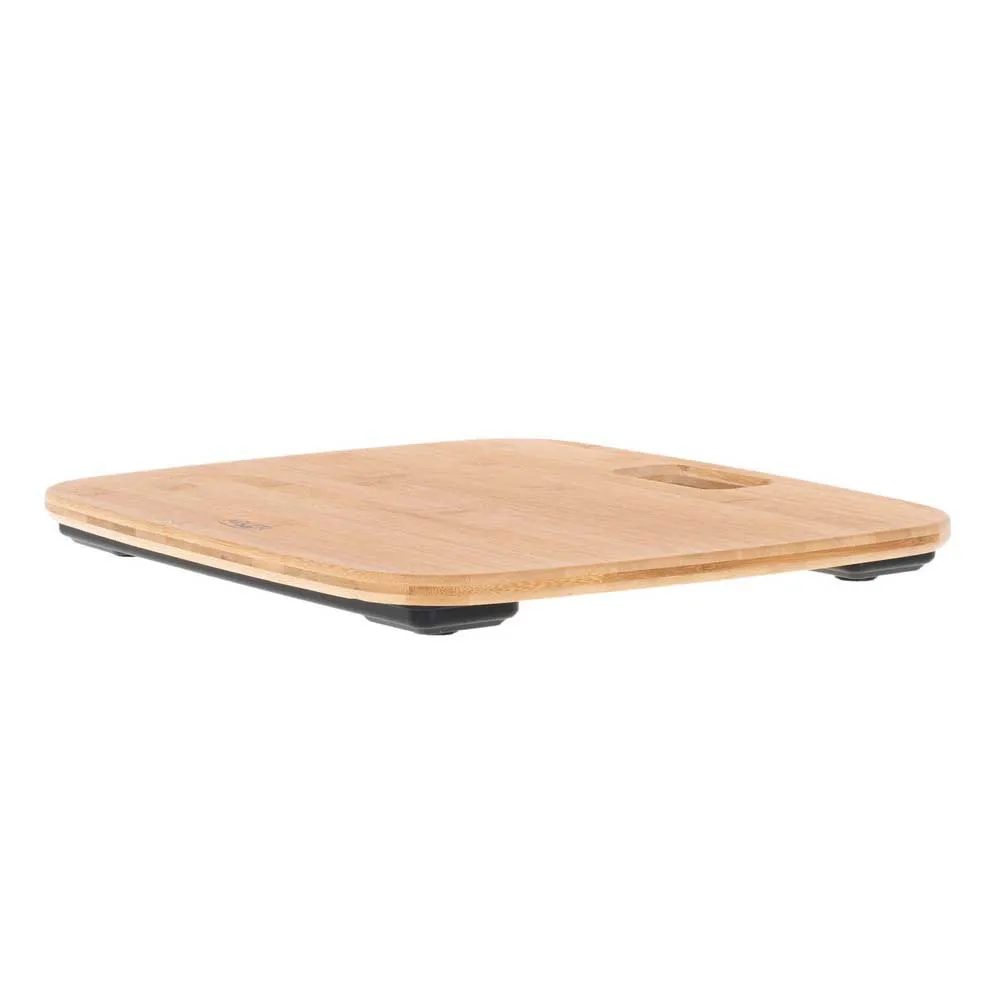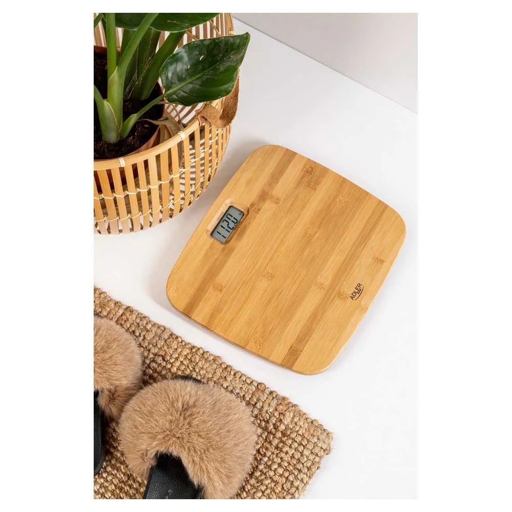 - The bathroom scale surprises with its appearance and reference to nature. Thanks to the 12 mm bamboo platform, it will work in a room designed in both traditional and modern styles. You can stand comfortably on it, the surface is pleasant to touch and easy to clean. The weight does not take up much space either.
