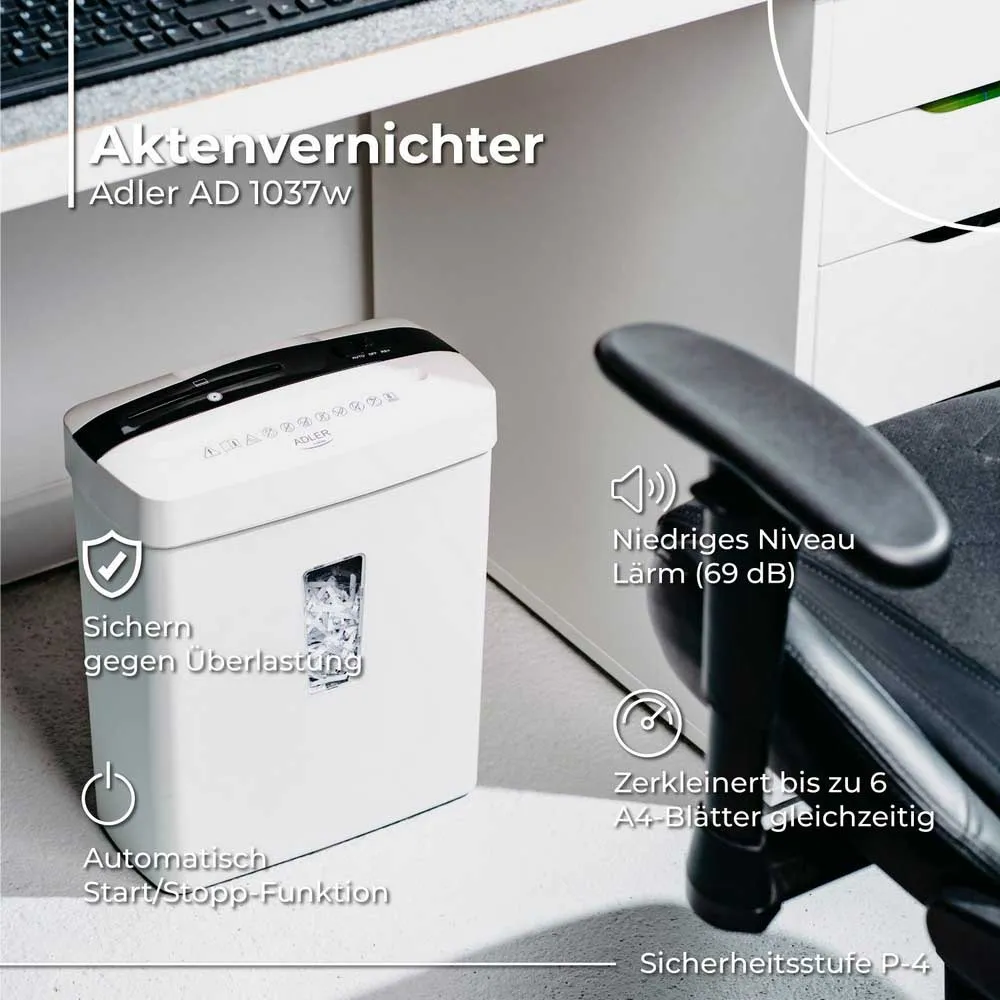 Adler AD 1037 is an efficient and compact document shredder that provides a high level of security and ease of use.