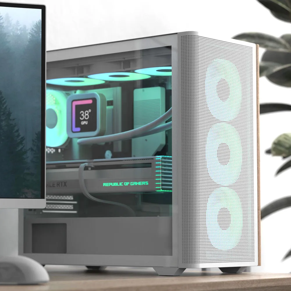 Sit back and enjoy one of our first-ever wood-accented PC cases, with a refined look designed to inspire a natural vibe within your desk space.