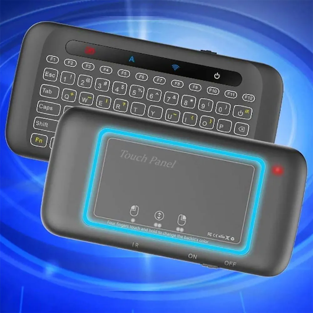 Mini H20 wireless keyboard, small QWERTY keyboard and backlit touch rear panel.