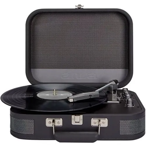 - Vintage Turntable in Faux Leather Case with 2-Track Bluetooth, USB-MP3 Player and Recorder.