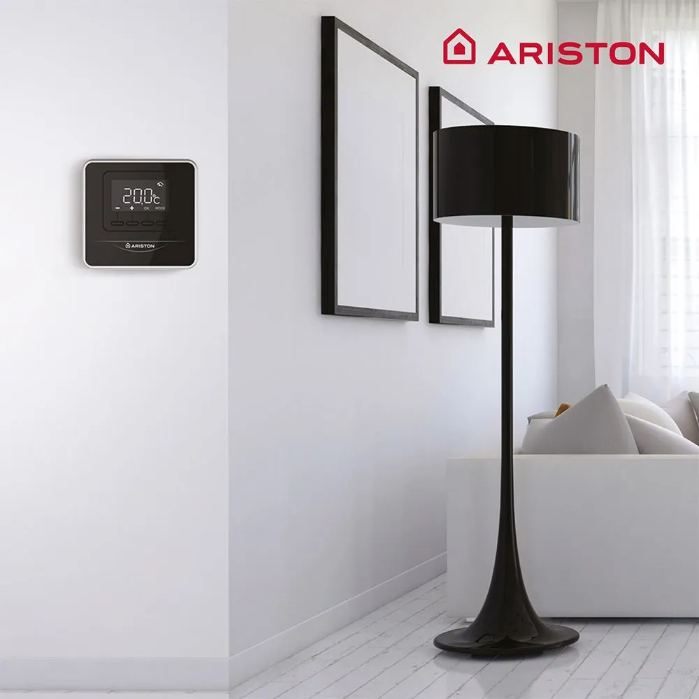 The Ariston CUBE modulating thermostat, available in both white and black, is a wired thermostat that provides easy control over your home´s temperature.