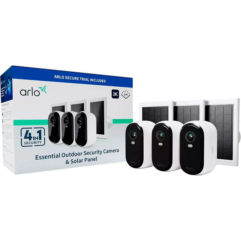 ARLO Essential 2K Security System with Solar Panels (3-Pack) | Crystal-Clear 24/7 Protection
