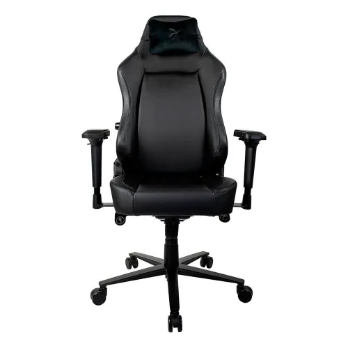 High end PU leather chair for max comfort with a Velour Head Pillow, built in Lumbar adjustment and 4D armrests.