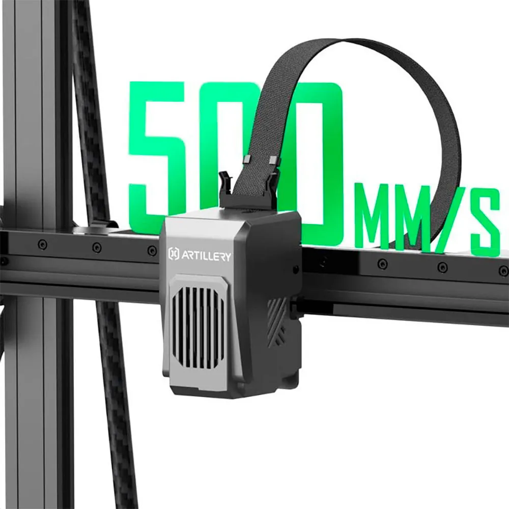 The new Artillery Sidewinder X4 Plus S1 is a fairly fast 3D printer, with a printing speed of up to 500 mm/s, with very high acceleration, and has an extruder capable of reaching up to 100ºC.