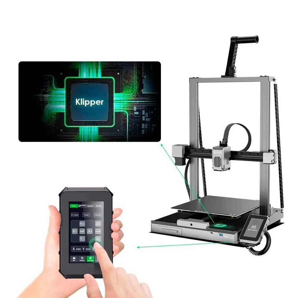 Artillery Sidewinder X4 Plus S1 3D Printer, 10000 mm/s acceleration, automatic leveling with 121 points and stability module.