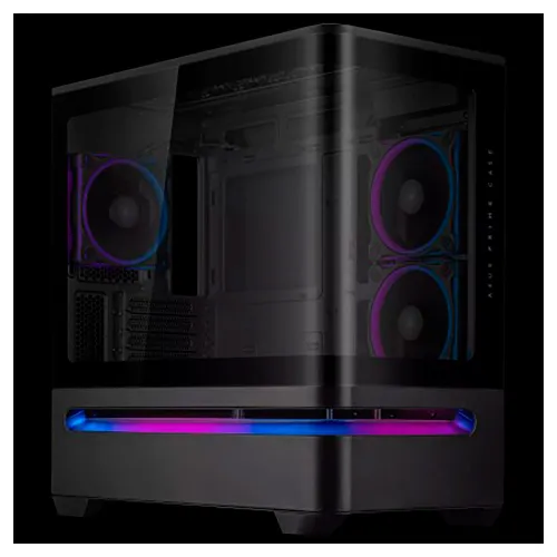 ​The ASUS Prime AP202 ARGB is a versatile panoramic mATX chassis designed to showcase system components with style.