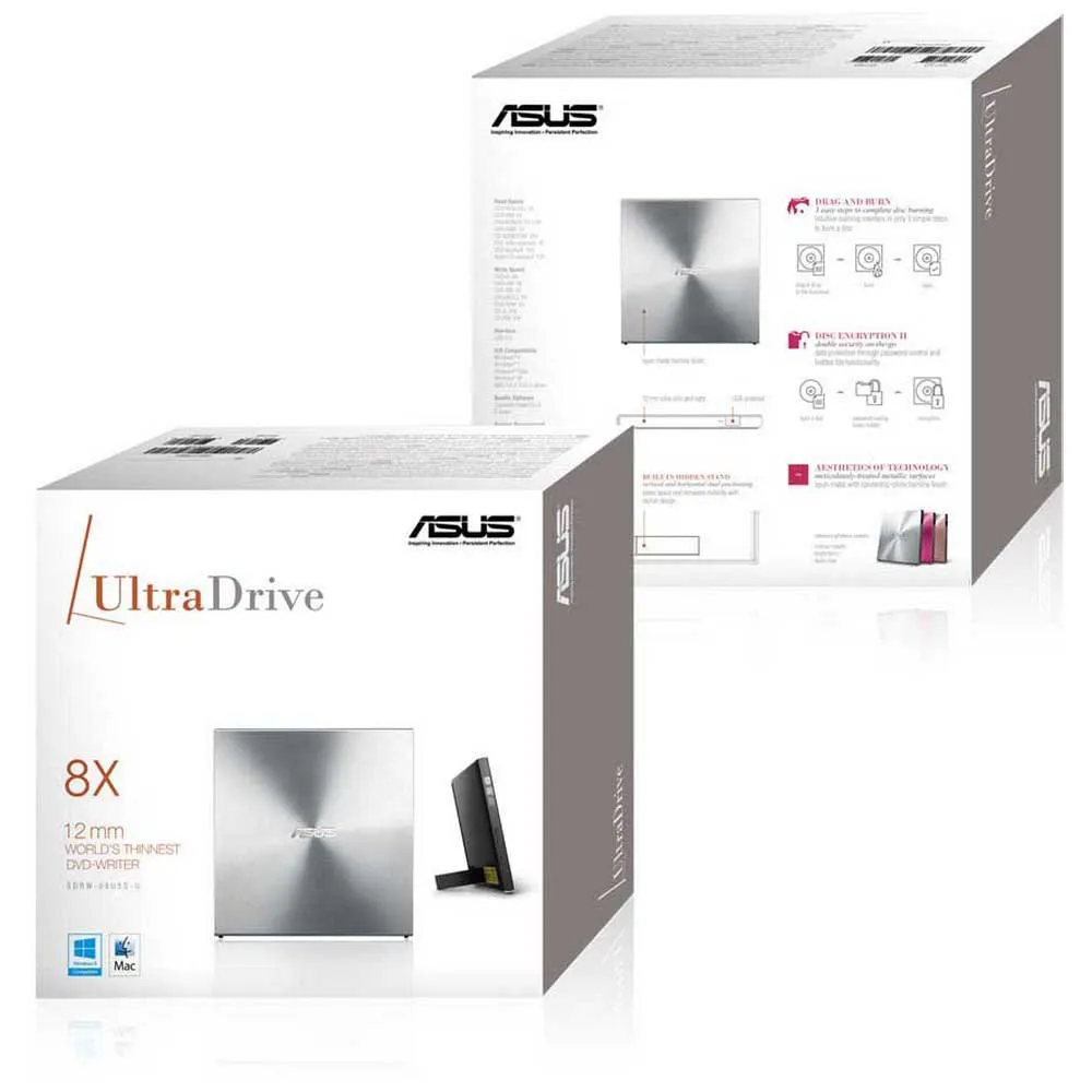 The ASUS SDRW-08U5S-U external DVD burner offers the thinnest profile on the market (12 mm).