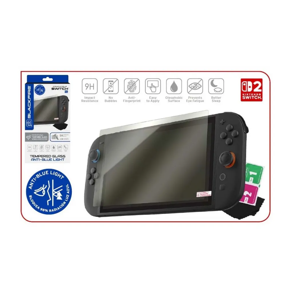 Shield your brand new Nintendo Switch 2´s vibrant display from everyday scratches and harmful blue light with the BLACKFIRE Switch 2 Anti-Blue Light 9H Screen Protector. Designed specifically for the new Switch 2 console, this premium screen protector offers superior protection without compromising your gaming experience. Enjoy crystal-clear visuals while safeguarding your investment against the rigors of daily use.