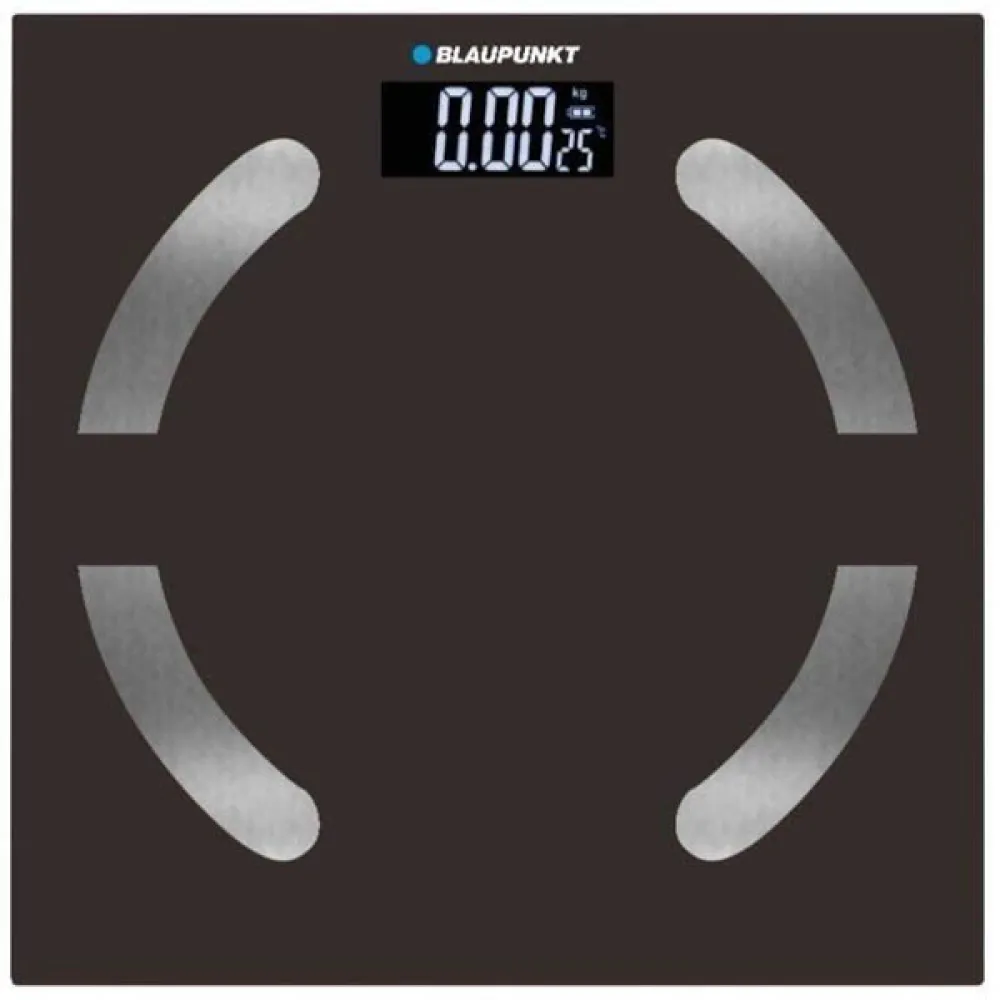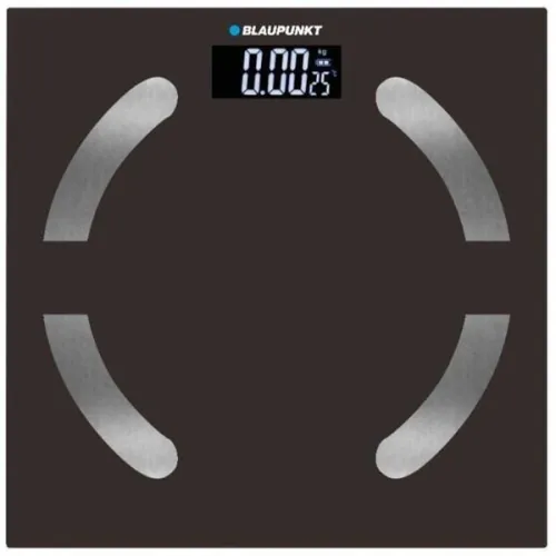 The Blaupunkt BP5010 is a bathroom scale with a modern design that integrates smart features such as a digital display, temperature indicator, and an extra-flat glass surface with visible sensors. Ideal for those seeking precision and functionality with an elegant touch.