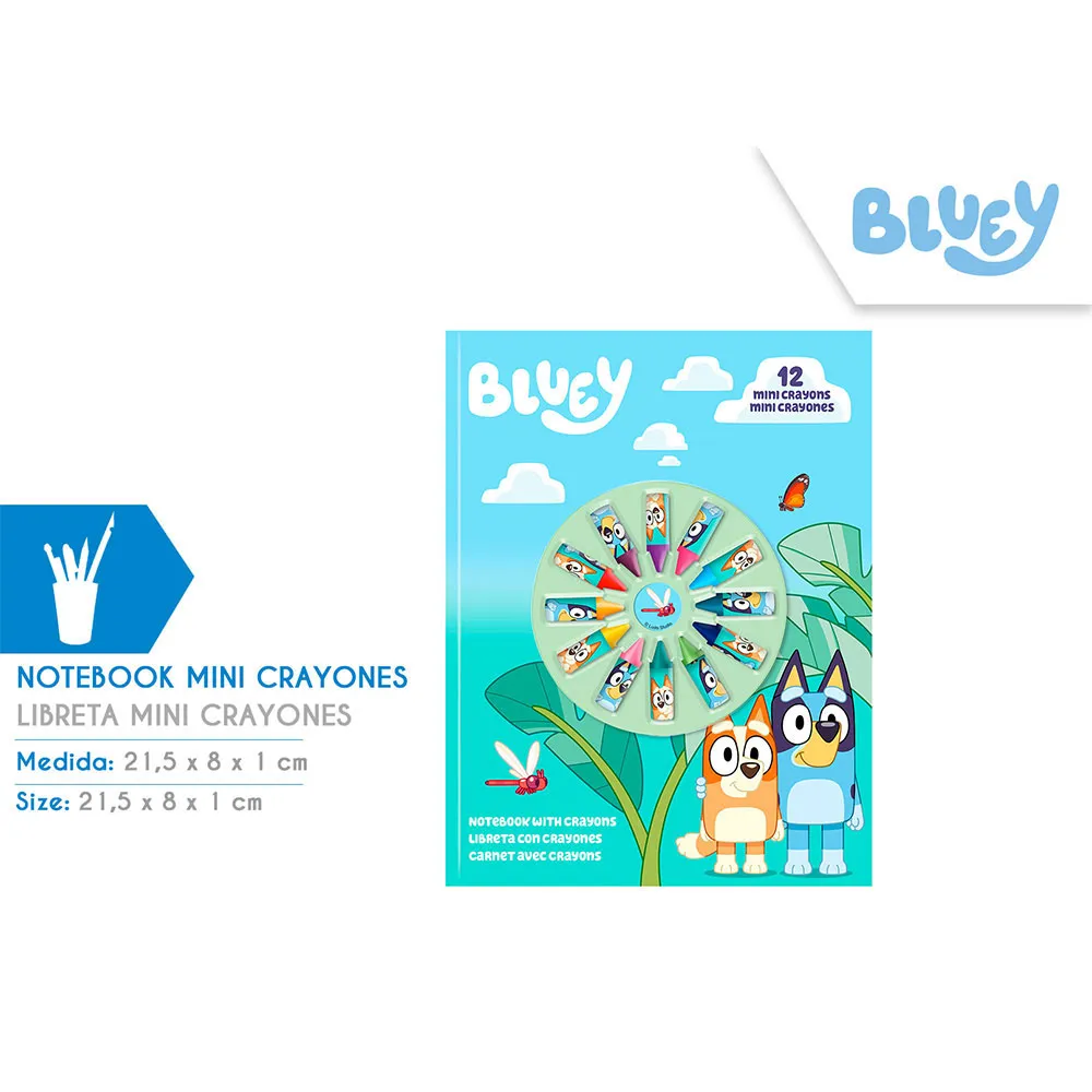Product description of Bluey Notebook With 12 Mini Crayons