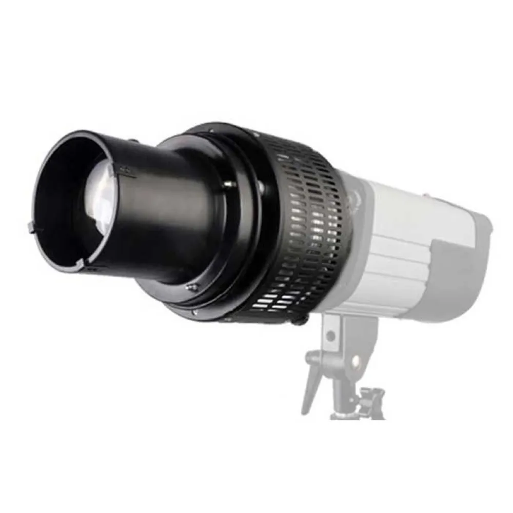 This optical snoot made of aluminium allows you to accurately direct and creatively use light and effects. The lens system of the snoot can be switched to ´´wide´´ or ´´small´´, which enables you to judge the final result quickly. The snoot can be used for example for hair light at portrait shots. The light is very rich in contrast and intensifies the glamour effect on you picture.