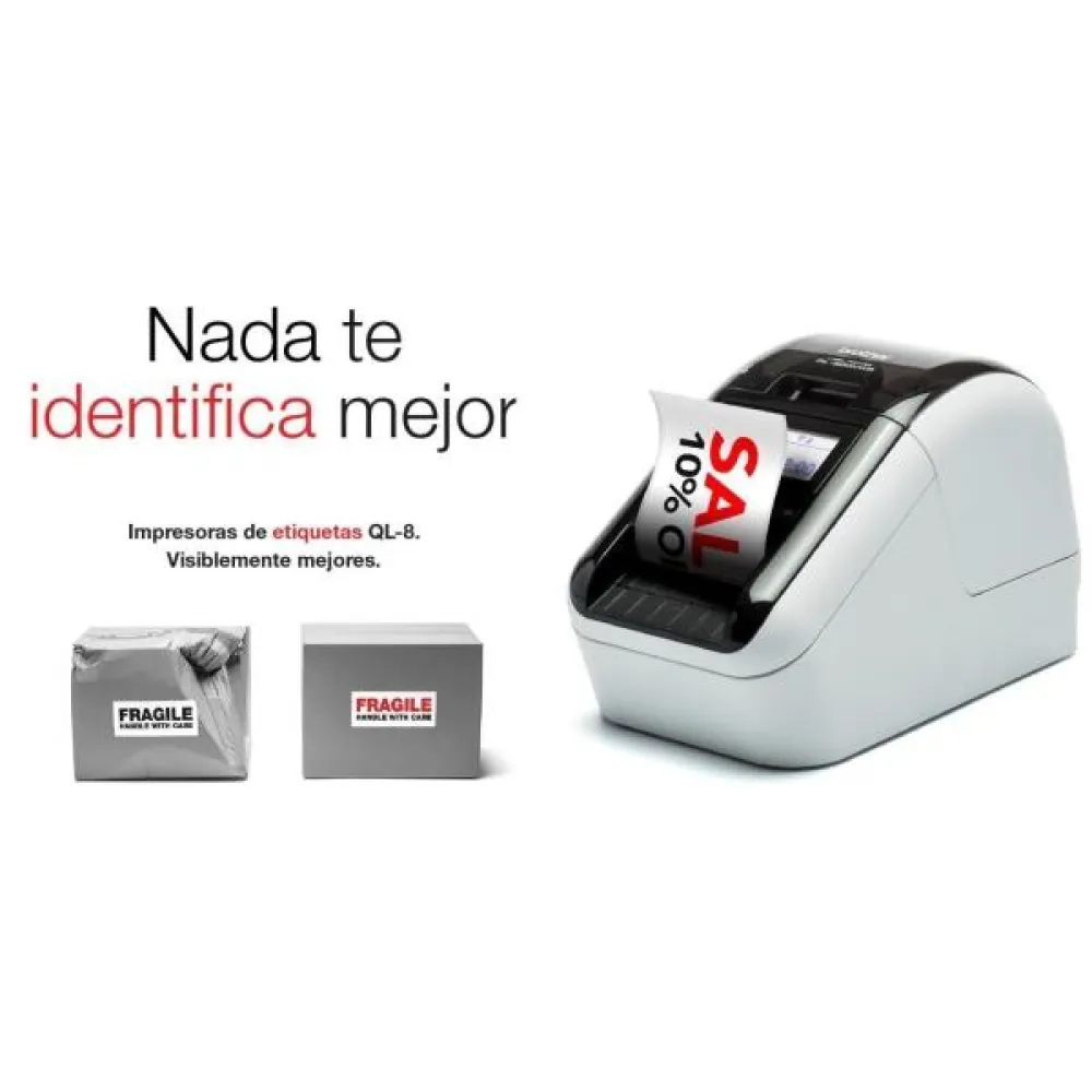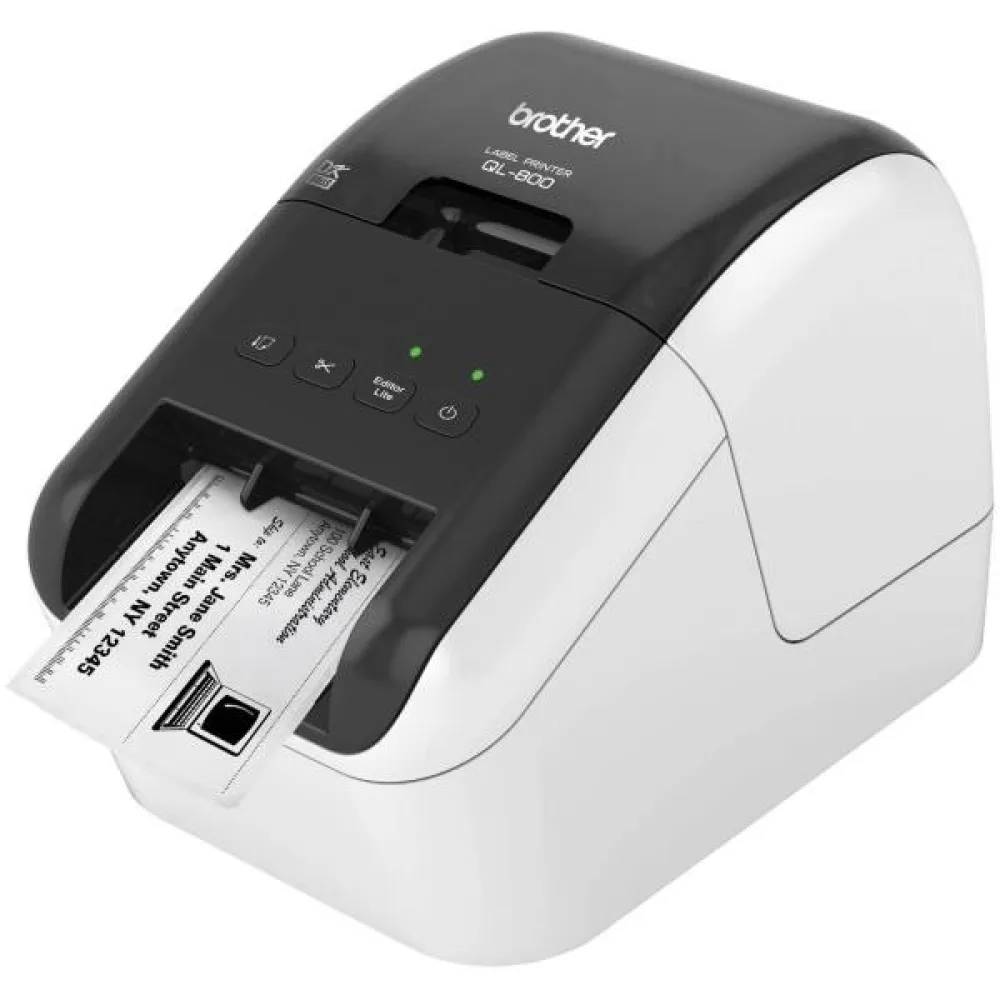 Boost your office productivity with the Brother QL-800 high-speed thermal label printer. It prints an impressive 93 labels per minute, perfect for tackling large projects quickly. Create stunning black and red labels with DK-2251 tape or versatile paper labels for packages, files, and badges. The integrated auto cutter provides clean cuts for single or multiple labels. Get started instantly on Windows PCs with the "Plug & Label" feature—no software installation required. For advanced designs, use the P-touch Editor software (Win/Mac). No ink or toner ever needed. EU Plug