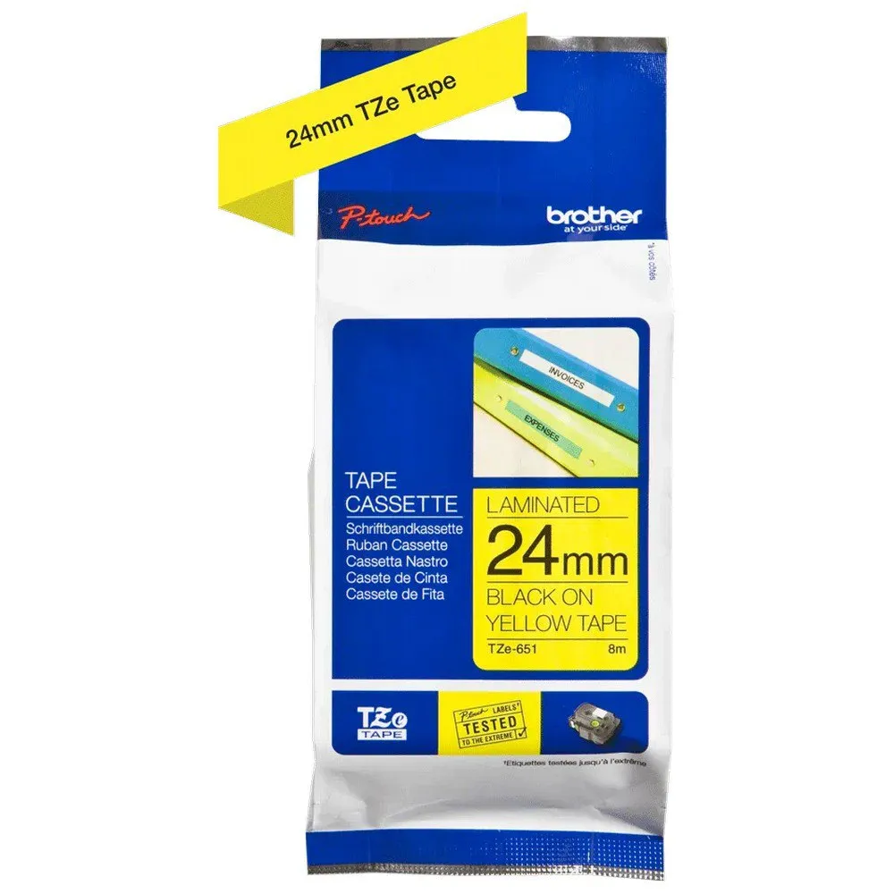 Compatible with a wide range of Brother’s P-touch printers, this genuine laminated TZe-651 labelling tape cassette is especially versatile thanks to its easy-to-read black and Yellow colour – so it comes in useful around the home, office and in other workplaces.