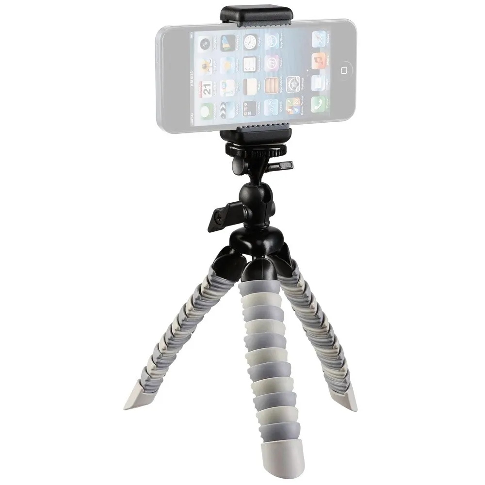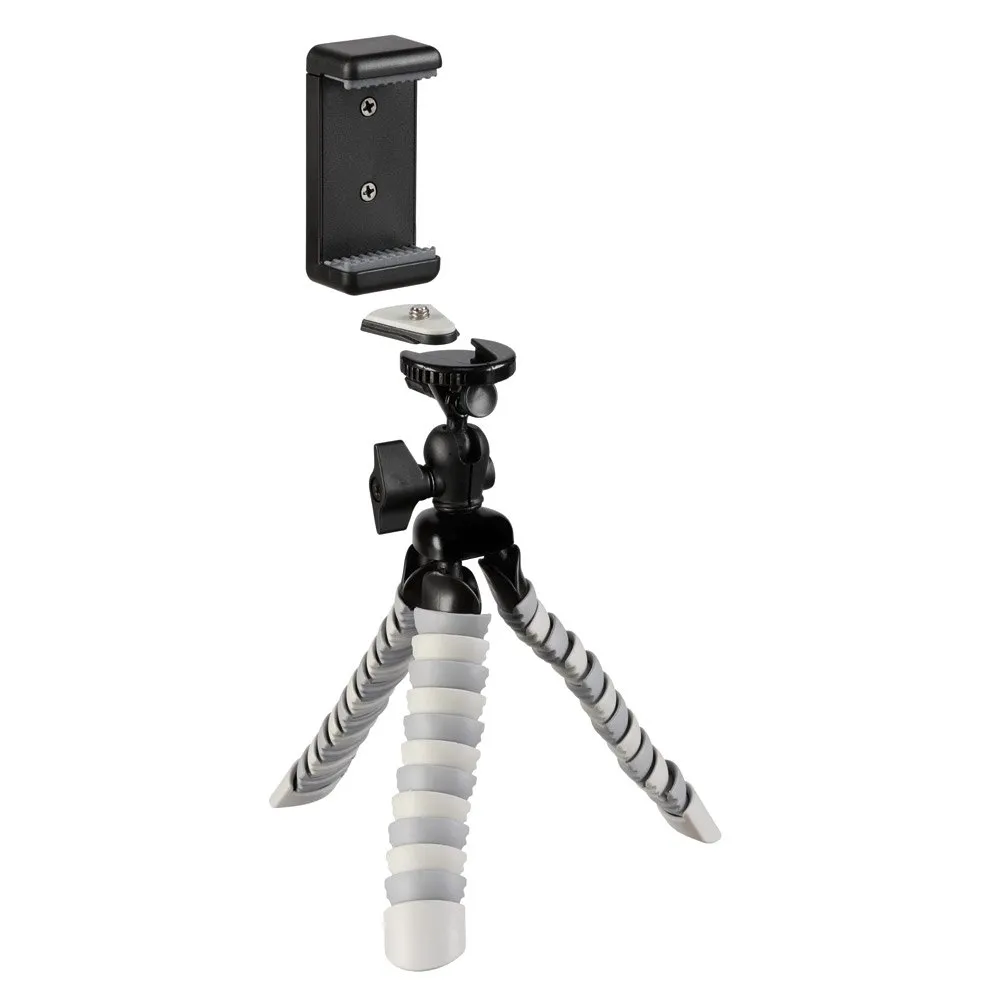 Compact, lightweight tripod for smartphones and digital cameras. Thanks to the flexibly adjustable, bendable legs, the tripod can also be adjusted to uneven floors and wrapped around poles or branches. The rubber coating on the tripod feet ensures stability everywhere.