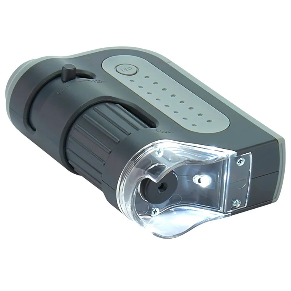 This pocket microscope features a built-in LED light that provides a bright, clear image.