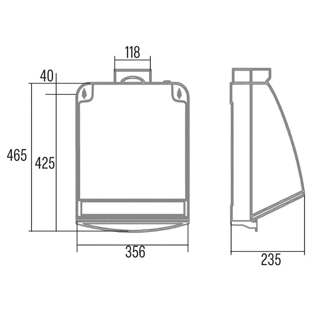 65/2014):49 dB(A) Maximum power consumption:119 W LED E-14 lighting Large extraction capacity Easy installation system Metallic filter with grease tray and dishwasher safe Metal outer structure and plastic turbine 120 mm discharge Energy efficiency class:D.