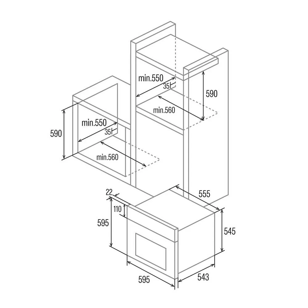 Multifunction oven with Turbo circular heating element - 8 functions.