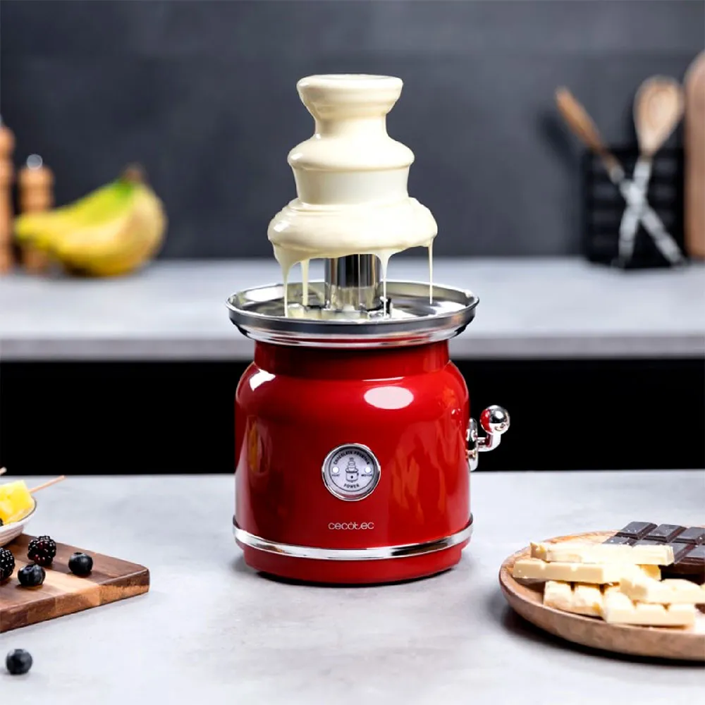 - Electric chocolate fountain with retro design in high-quality stainless steel, ideal for any kitchen.