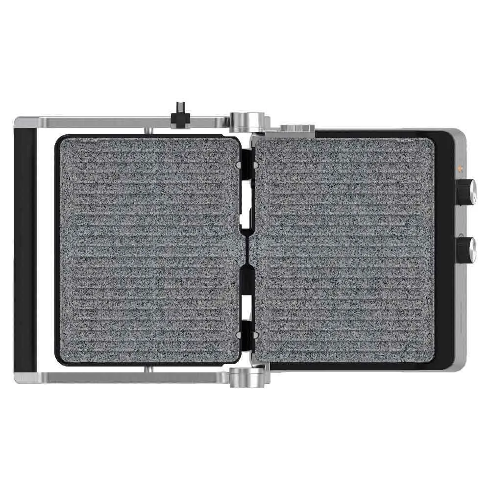 180º opening:- It has a 180º opening system to be able to take advantage of both grills at the same time and cook a larger amount of food, being able to combine meat or fish with vegetables.