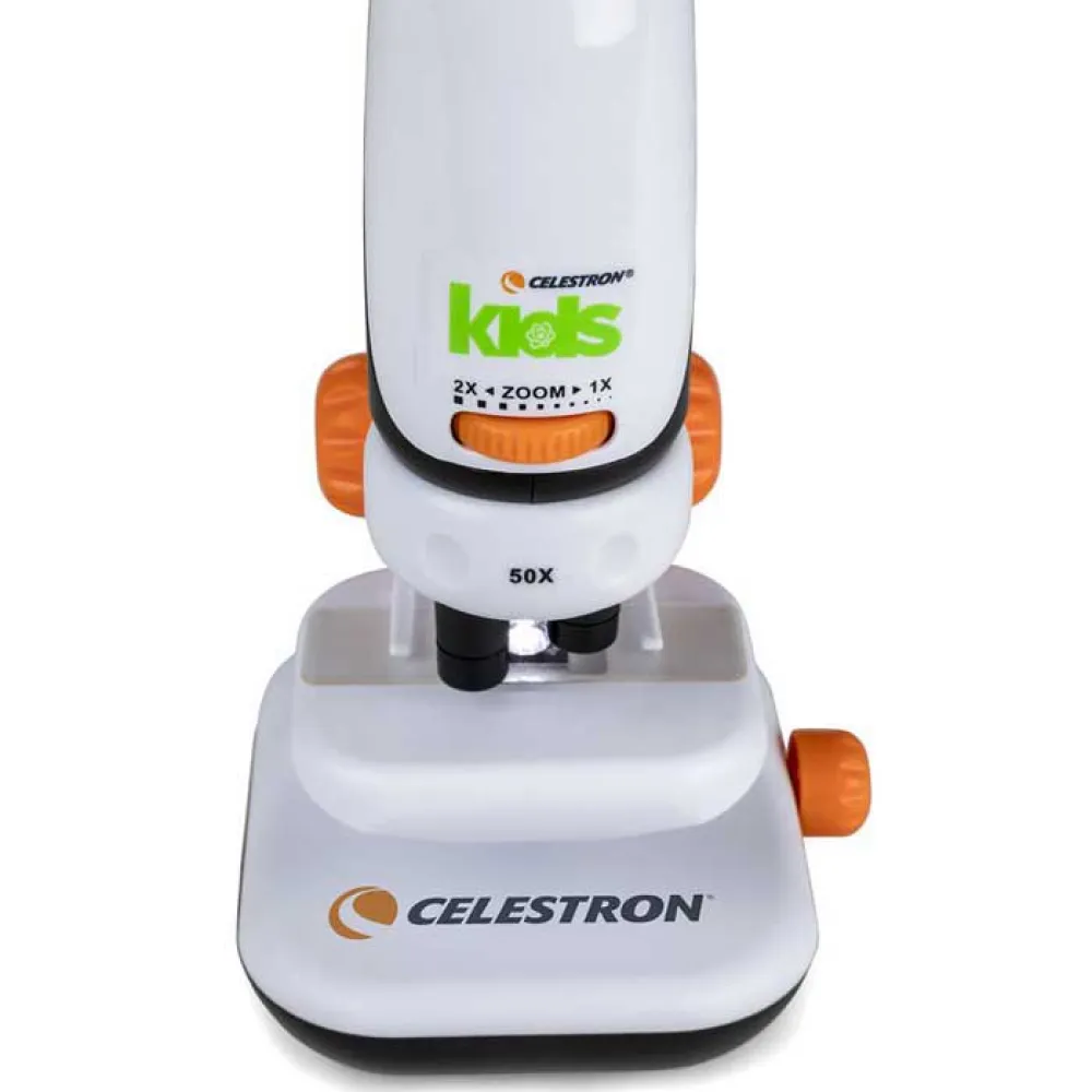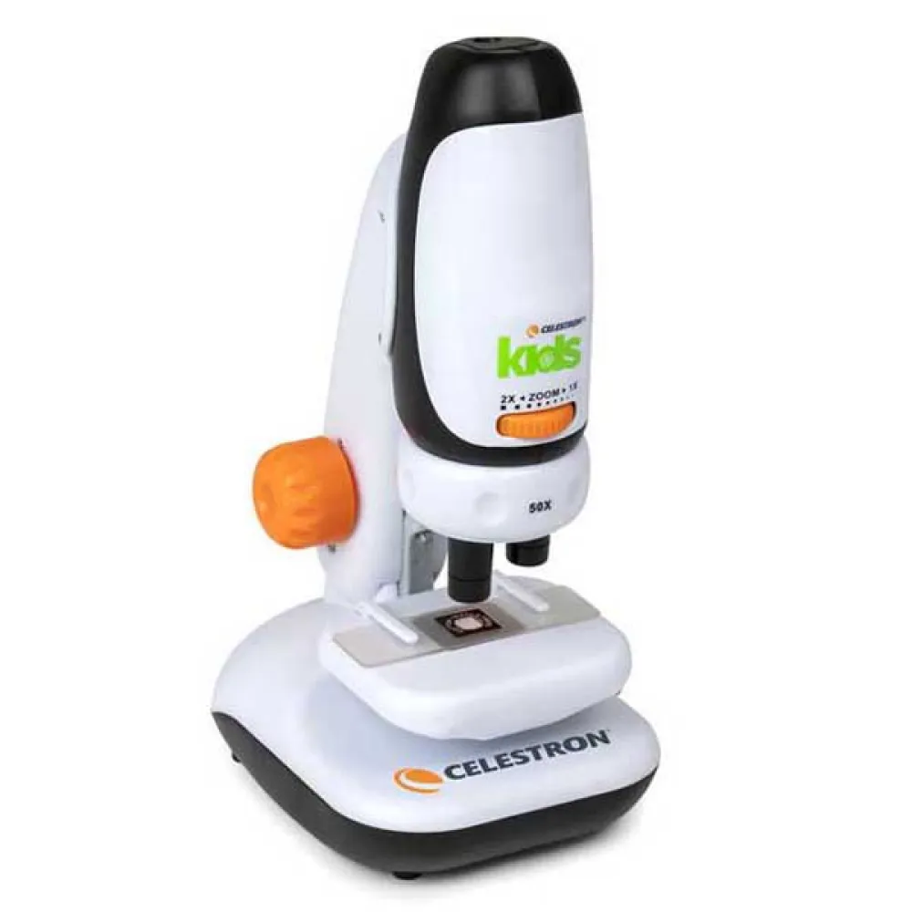 Your Celestron Kids Microscope has some of the same features as a professional microscope, like a mechanical stage to view your object, so kids will be prepared for the more complex instruments when they encounter them in a classroom or lab.