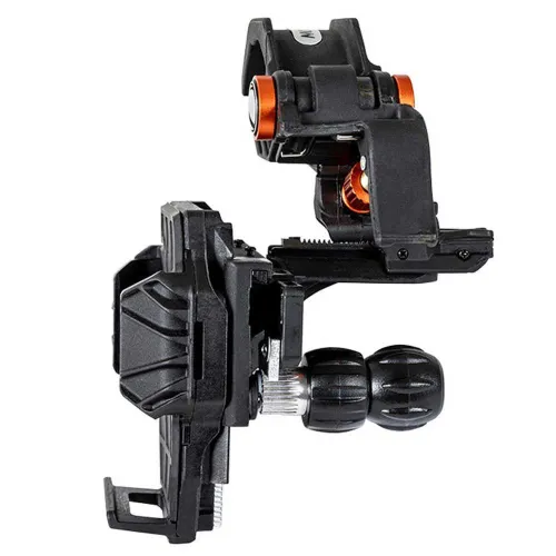 - Features three directional knobs (X-, Y-, and Z-axis) that perfectly align your phone’s camera with the eyepiece in seconds. In addition, you can make tension adjustments to keep the phone firmly in place.
