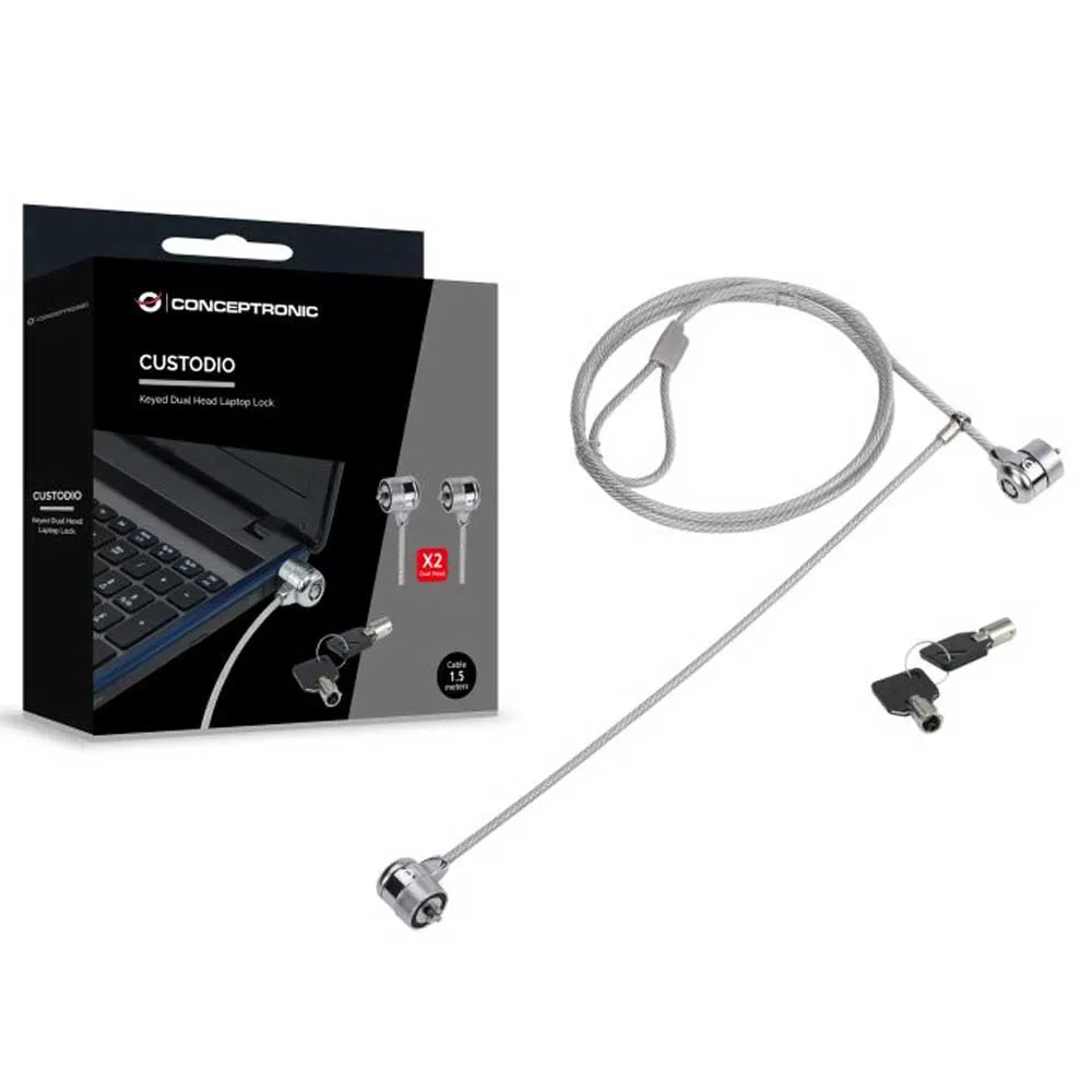 The Notebook Security Lock secures notebooks against theft*. The lock fits on every notebook with a security connection. Just secure the 1.5 meters cable to a firm object (for example a table) and connect it to the notebook. Including 2 keys. This product works theft-delaying, it does not prevent theft. Conceptronic can not be held responsible in case of theft or damage.