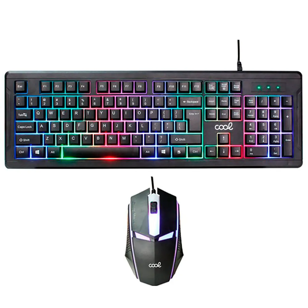 Combo Spanish gaming keyboard with modern design and long-lasting keys plus illuminated mouse.
