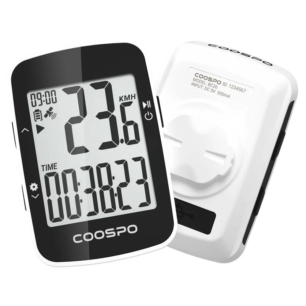 Specs:- GPS:GPS + BEIDOU- Screen:2.3” FSTN anti-glare- Water resistance:IPX7- Battery:600 mAh rechargeable Li-ion battery- Autonomy:Up to 20 hours- Charging interface:Micro USB- Memory:8MB- Wireless transmission:Bluetooth (lean connection with App Coospo Ride)- Data display:Speed, Maximum Speed, Average Speed, Route Time, Distance, Altitude, Odometer, Total time, Time, Speed ​​Alarm.- Data format:.fit- Backlight:Yes, automatic (one hour before sunset to one hour after sunrise)- Temperature of use:-10º to 50º C- Barometric altimeter:Yes- Net weight:54 grams- Dimensions:72.26mm x 50mm x 21.55mm- Colour:Black-Black / Black-White- Box Contents:COOSPO BC26, Micro USB Cable, Standard Bike Mount, User Manual.