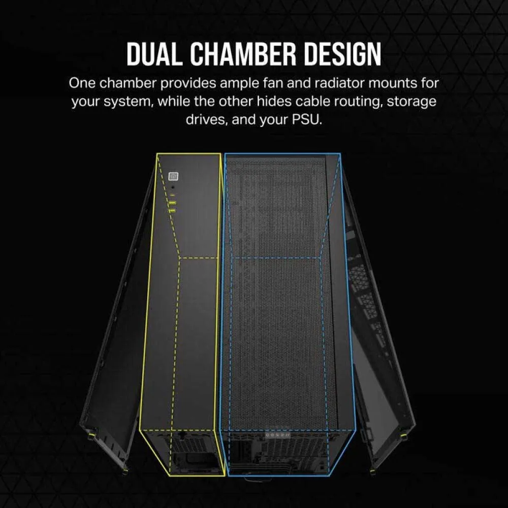 The CORSAIR 2500D PC tower case offers the perfect blend of space, cooling potential, and sleek design, making it the ideal choice for builders of all levels who demand the best for their systems.
