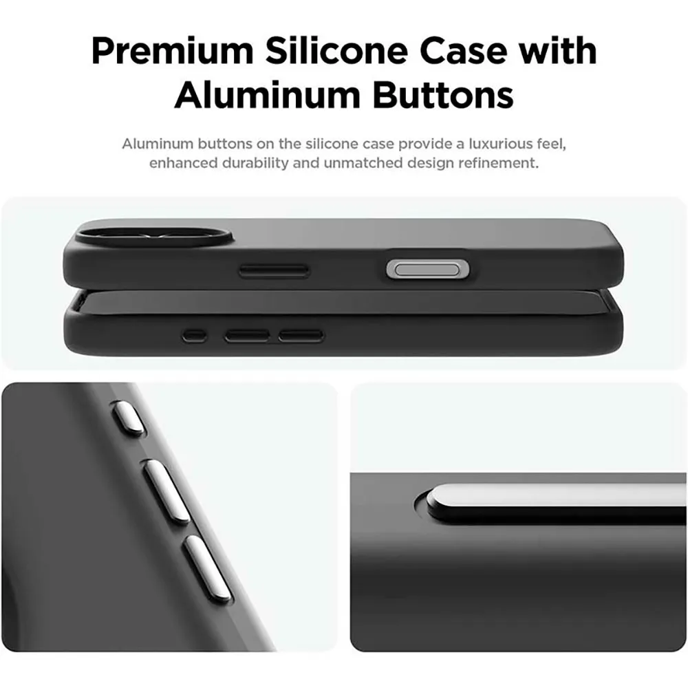 Made with PC, liquid silicone, microfiber, and aluminum buttons.