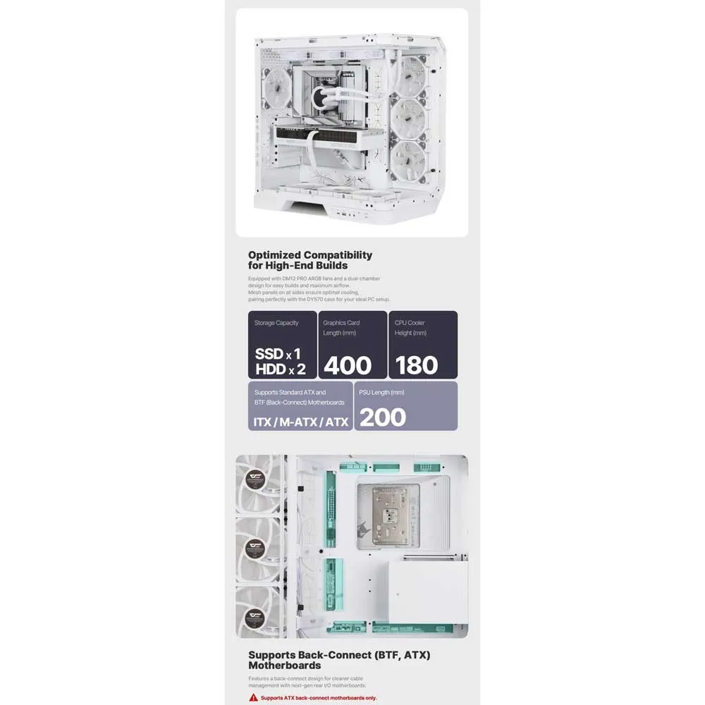 * Spacious & Versatile Interior: As a Large mid-tower case, the DY570 provides ample room for high-performance hardware. It comfortably accommodates full-size ATX motherboards, extra-long graphics cards up to 410mm, and tall CPU air coolers. This generous space ensures an easy and enjoyable building experience without compromise.