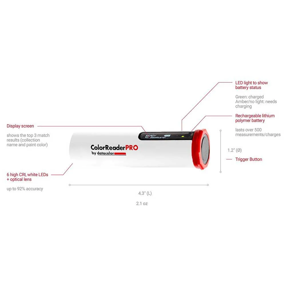 * Ultimate Portability: Compact, lightweight, and rechargeable, the ColorReader Pro is designed to be your constant companion, ready to capture inspiration wherever you find it.