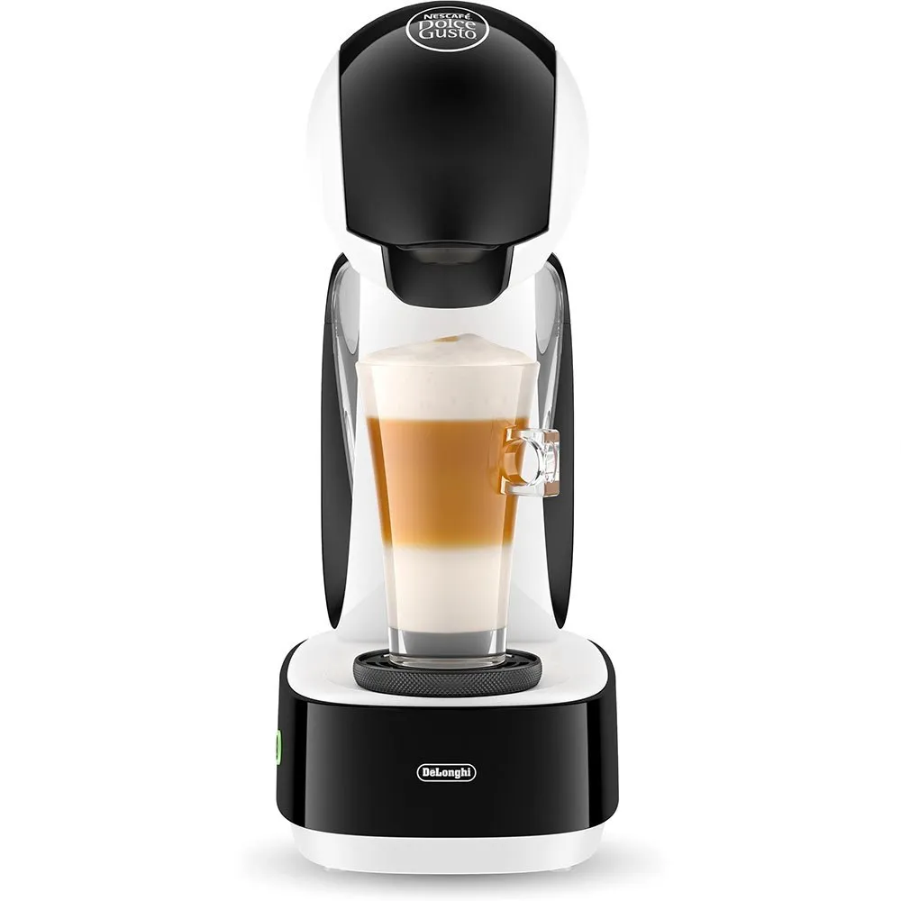 The DELONGHI Dolce Gusto Infinissima capsules coffee maker in white is a sleek and compact small appliance that allows you to enjoy delicious coffee at home with ease.