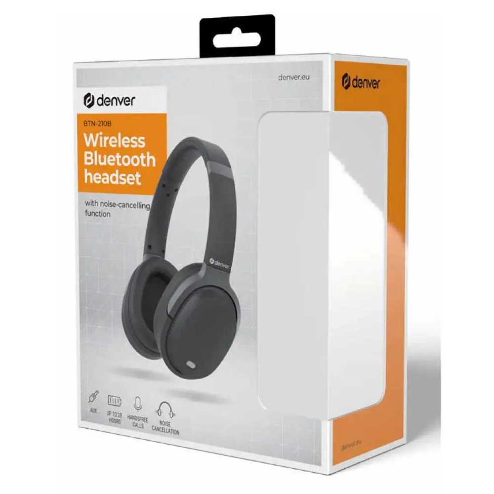 Wireless Bluetooth headset with ANC - active noise cancelling. Built-in rechargeable battery, handsfree function for calls, AUX input with cable