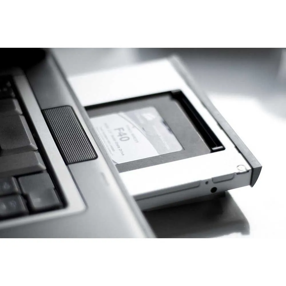 The digitus® ssd/hdd mounting frame for the cd/dvd/blu-ray drive slot is the perfect solution for upgrading your notebook. with this frame you can replace the optical drive (cd/dvd/blu-ray) by a hard disk. provide the frame with the original drive aperture and the exchange remains externally unremarkable. the frame corresponds to a shaft height of 12.7 mm and is designed for 2.5´´ sata ssds and hdds. the digitus® ssd/hdd mounting frame for the cd / dvd / blu-ray drive slot is used in almost all optical drive bays with sata interface. it serves the memory expansion through the use of a hard drive / ssd and allows faster access to your data it contains.