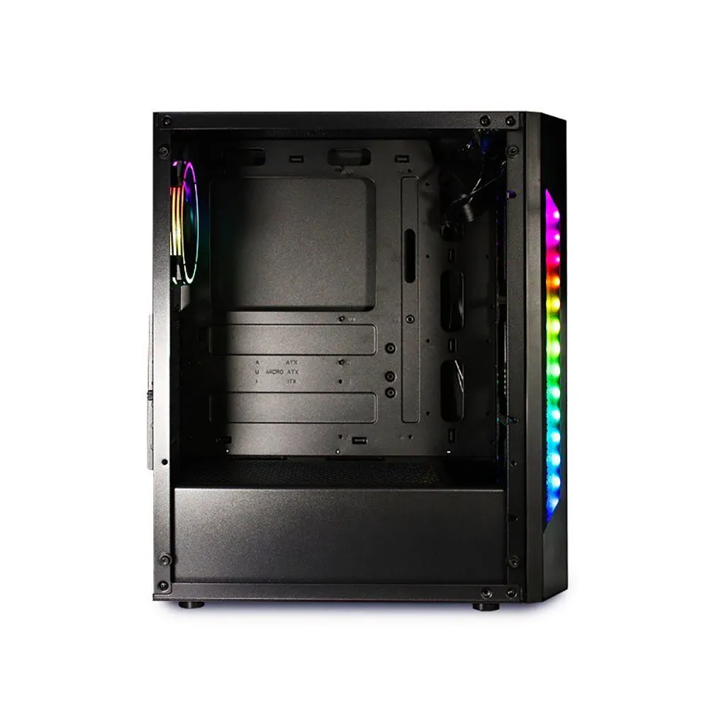 In its elegant aluminum front, we have installed RGB LED strips on both sides, as well as slits that next to the 120mm RGB fan installed in the rear, allow an optimal air flow to always maintain the best temperature of Your components.